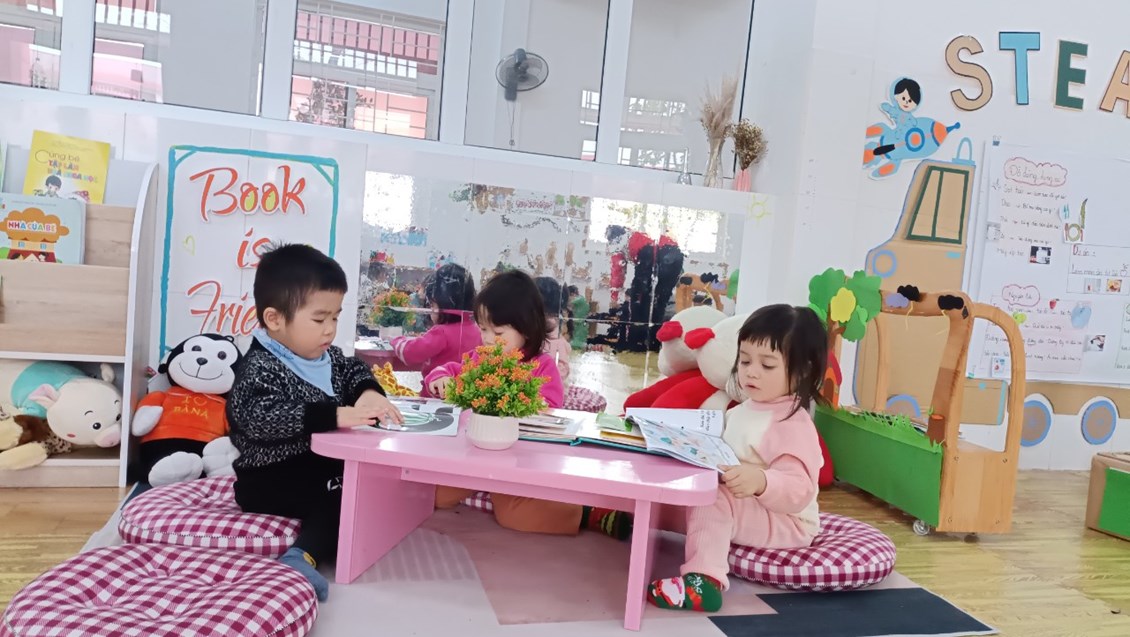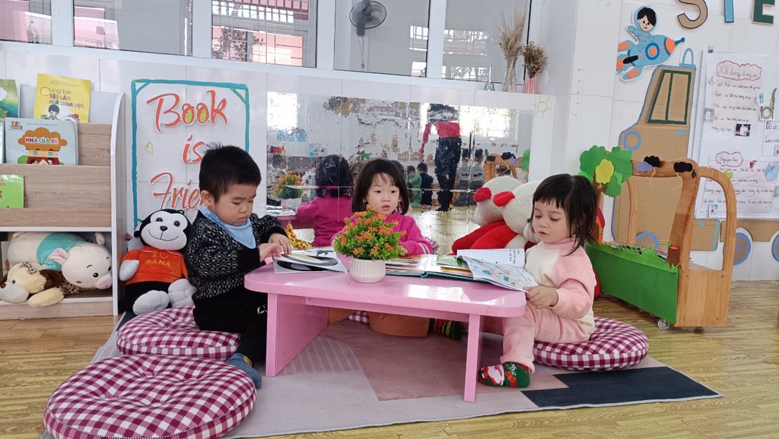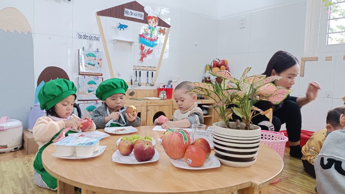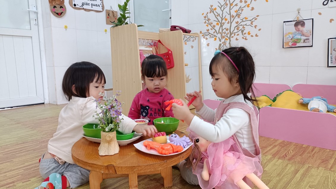 Tại góc phản ánh sinh hoạt: Trẻ vui vẻ sử dụng các đồ dùng công nghệ để chế biến các món ăn ngon hay sử dụng bát thìa khéo léo xúc cho em búp bê ăn. Hay tại góc khoa học: trẻ thích thú được làm các thí nghiệm thú vị, góc sách truyện- tạo hình, góc hoạt động với đồ vật.Ở mỗi góc chơi trẻ đều được học những kiến thức, kỹ năng khác nhau và quan trọng hơn cả là trẻ có cơ hội được thể hiện mình và bước đầu biết chơi thân thiện cạnh bạn khi tham gia các hoạt động.