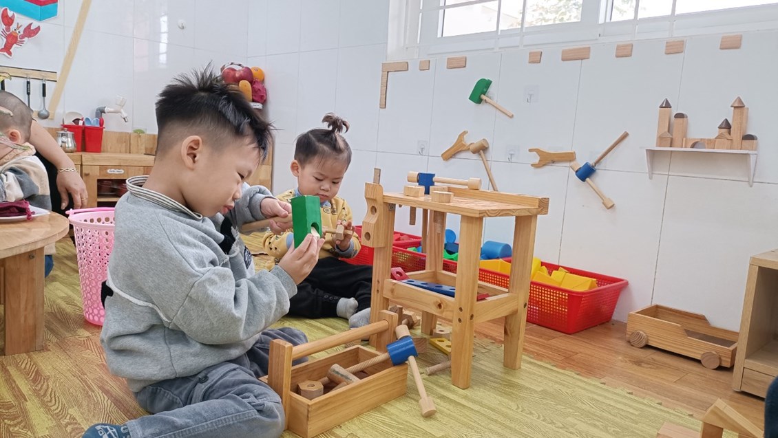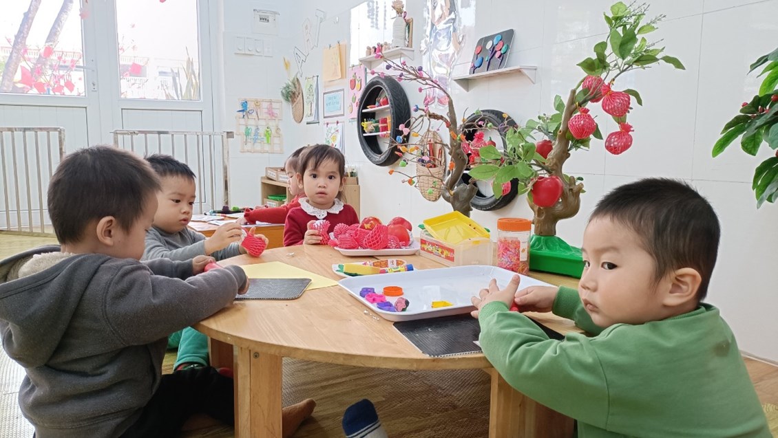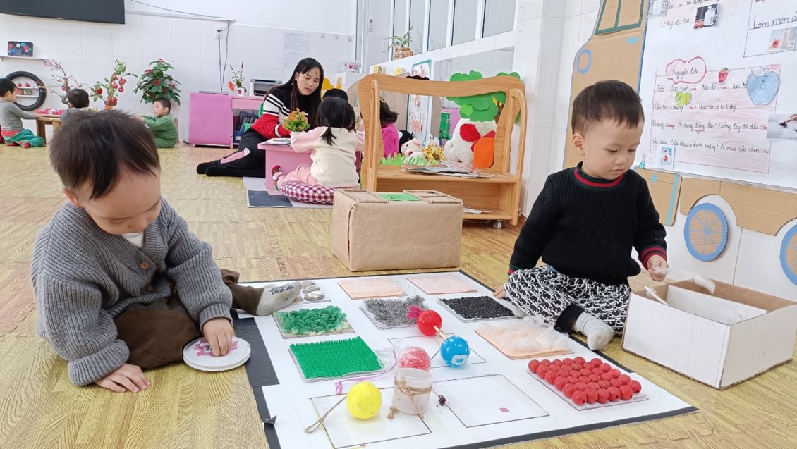 Bây giờ chúng ta cùng tham gia hoạt động chơi tập với các bạn nhỏ 2 tuổi lớp A3 ở trường Mầm non Sao Mai nhé!