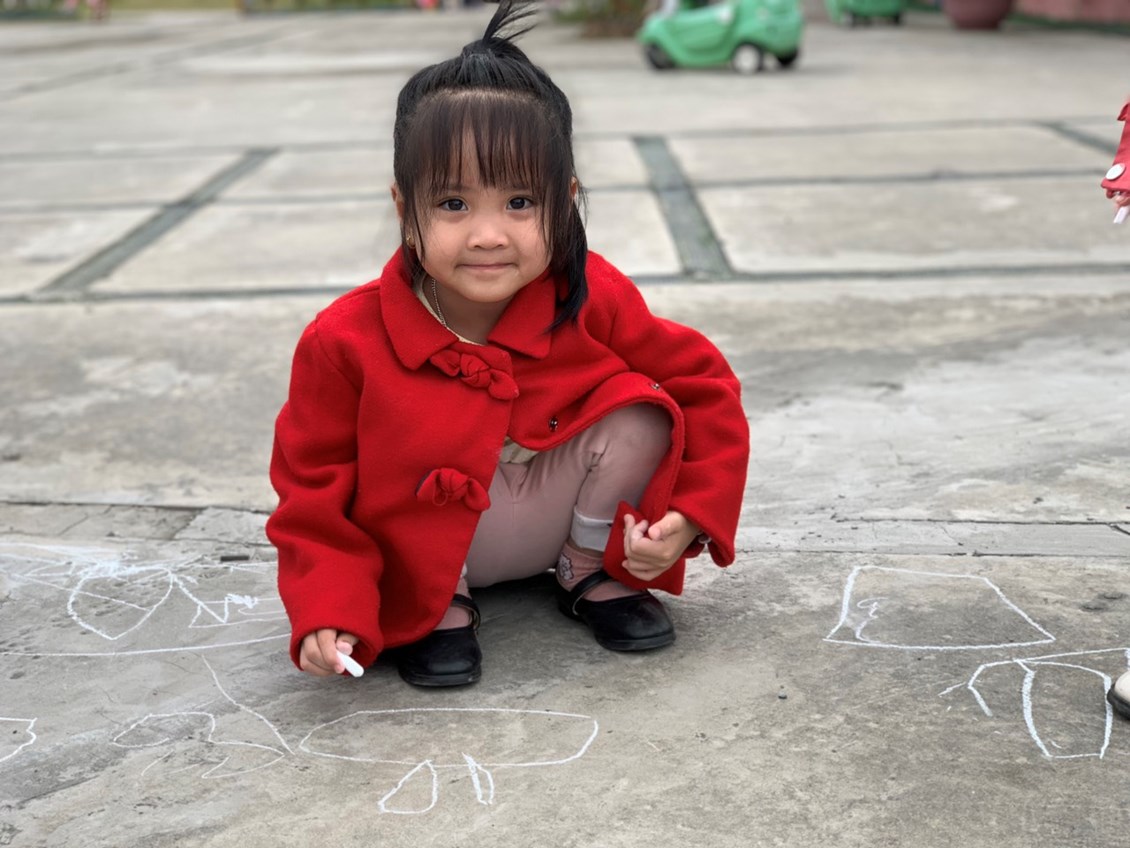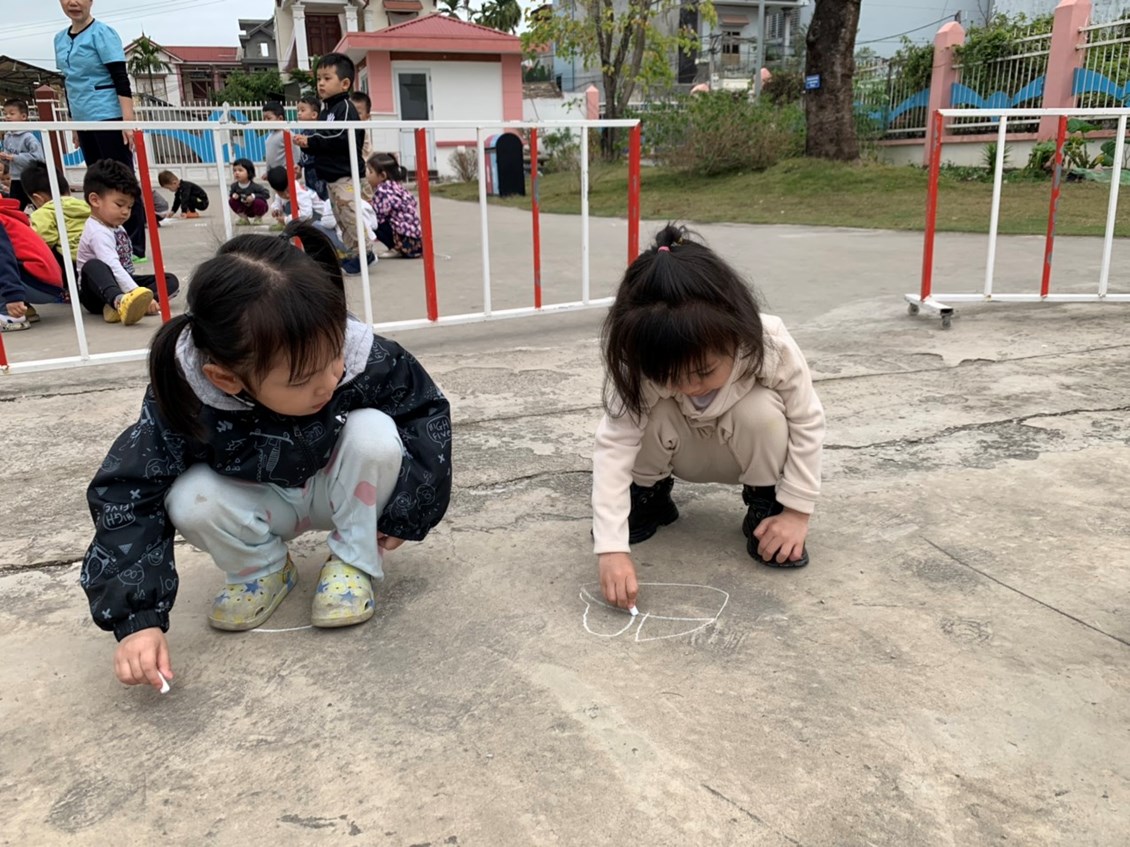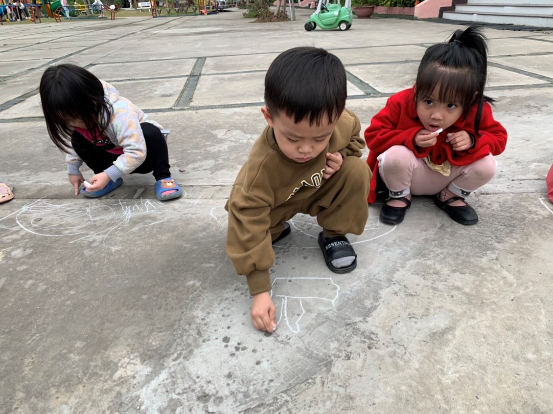 vẽ con thuyền bằng phấn trên sân trường