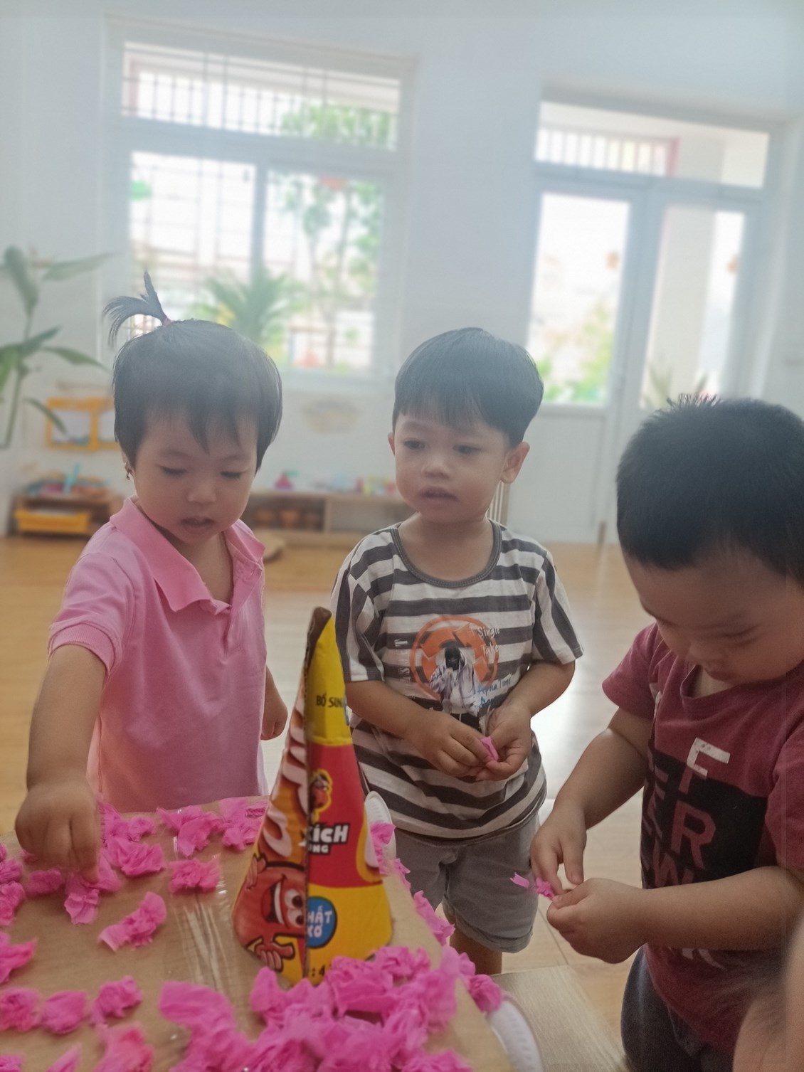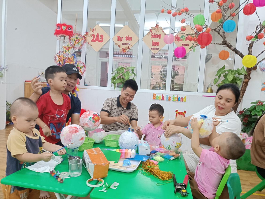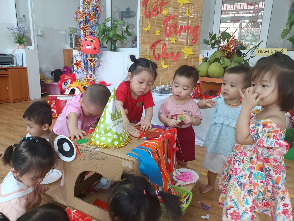 Để đón ánh trăng tròn nhất của 1 năm , các bé lớp 2A3 đã hứng thú chuẩn bị cho ngày phá cỗ trông trăng thật tỉ mỉ và chu đáo. Chuỗi hoạt động làm đèn lồng, làm bánh dẻo, làm đầu kỳ lân, trang trí bày mâm ngũ quả...ôi, những hoạt động đó chắc không ai ngờ những em bé nhỏ xíu 24-36 tháng có thể làm được đúng không ạ? Vậy mà những em bé lớp 2 tuổi a3 trường mầm non Sao Mai đã làm được xuất sắc đó ạ.