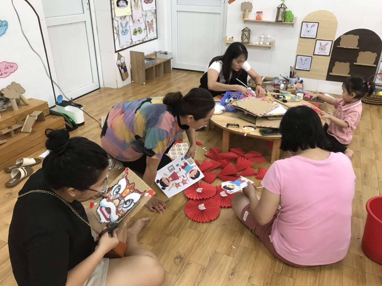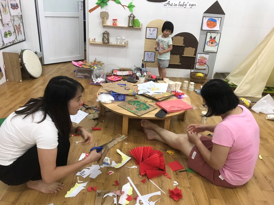 Các mẹ đến lớp giúp cô giáo và các con.