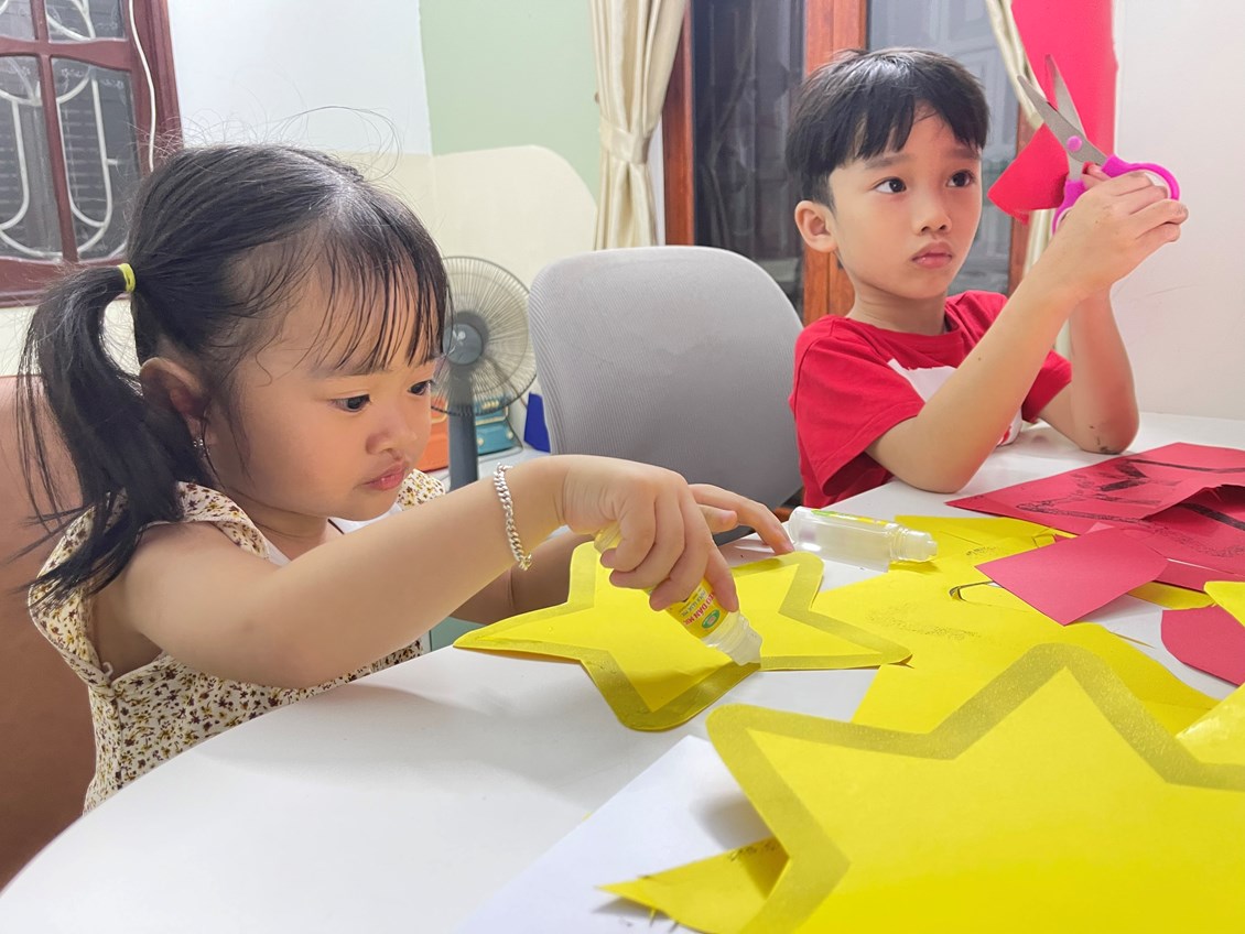 Bé Tuệ Lâm cùng anh làm đèn ông sao.