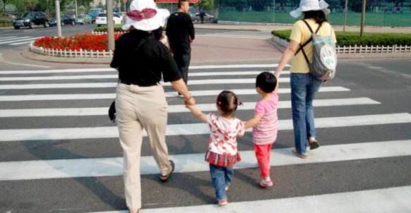 Trẻ sang đường phải có người lớn dắt tay