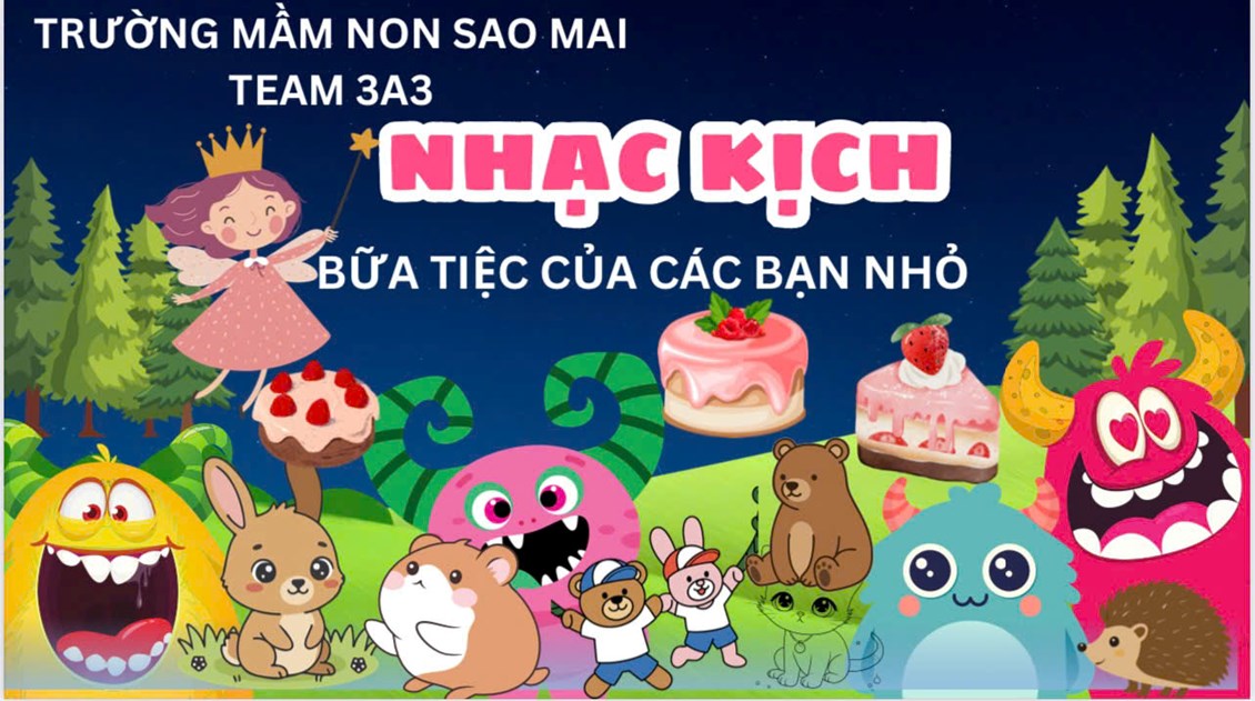 Hòa trong không khí vui tươi của trường Mầm non Sao Mai, các bạn nhỏ lớp 3A3 đã mang đến một tiết mục nhạc kịch thật đặc sắc mang tên “Bữa tiệc của các bạn nhỏ”.