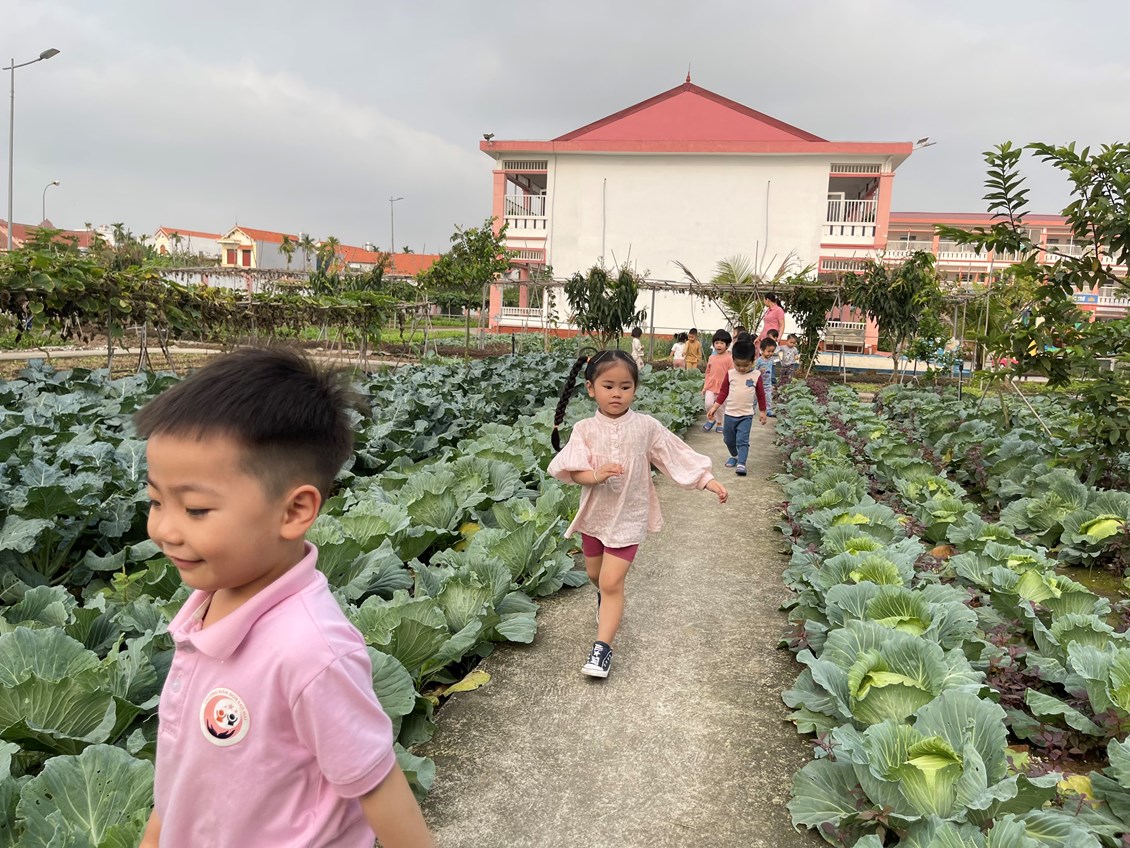 Tháng 3 về mang theo những làn gió mát, mang theo những tia nắng ấm áp gọi hè. Trên sân trường những em bé vô cùng thích thú đùa vui theo những cơn gió đầu hè, cùng nhau khám phá vô vàn những điều thú vị trên những luống rau xanh mướt, chạy theo những bạn bướm xinh xinh. Còn điều gì tuyệt vời hơn khi những nụ cười luôn hiện trên môi trẻ.