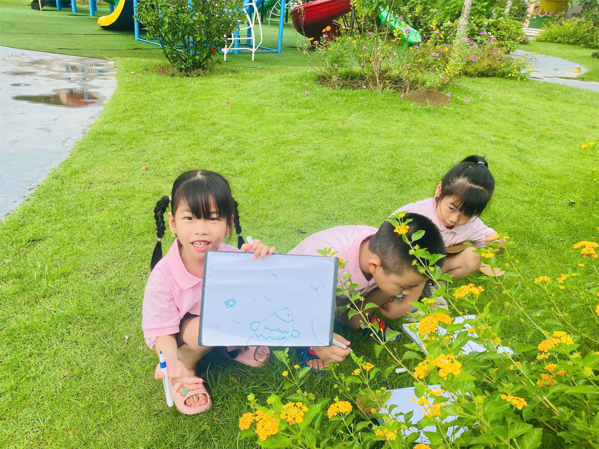 Những giờ hoạt động ngoài trời thú vị, những nét vẽ thơ ngây hồn nhiên, đón bóng lá, bóng cây, trên sân trường rộn ràng tiếng cười đùa của các bạn vui ơi là vui. Xa xa cô giáo đang gọi các bạn, cùng xem, cùng quan sát, cùng vẽ. Nhiều tác phẩm siêu đáng yêu lắm.