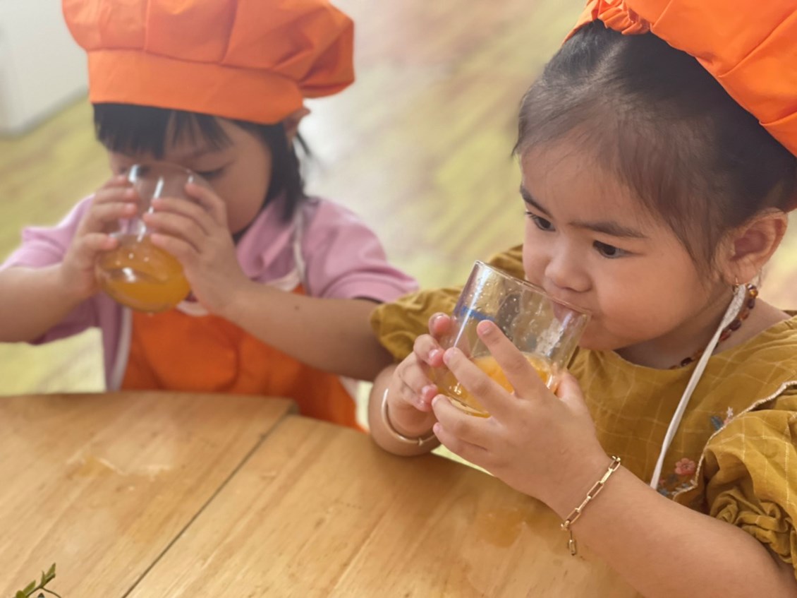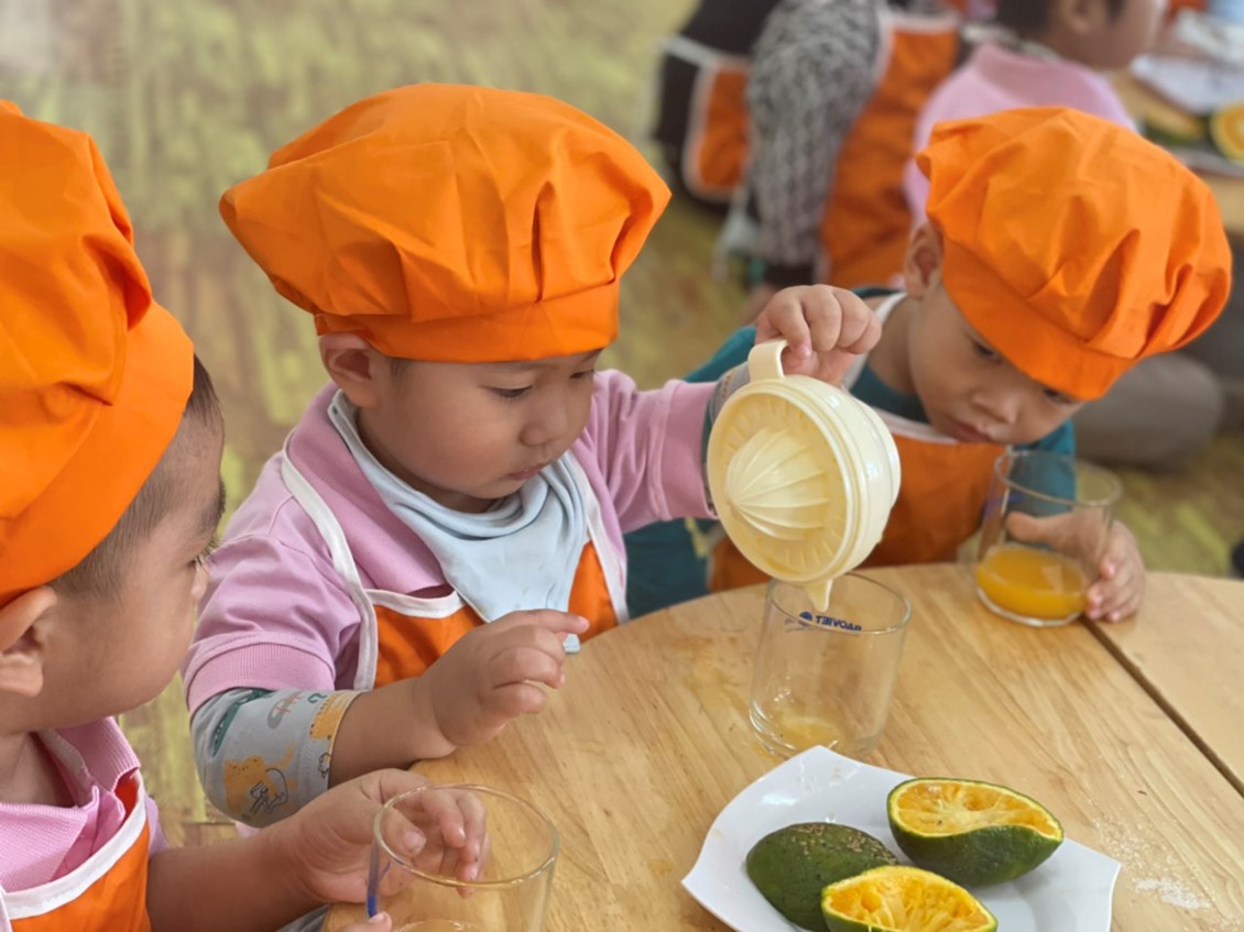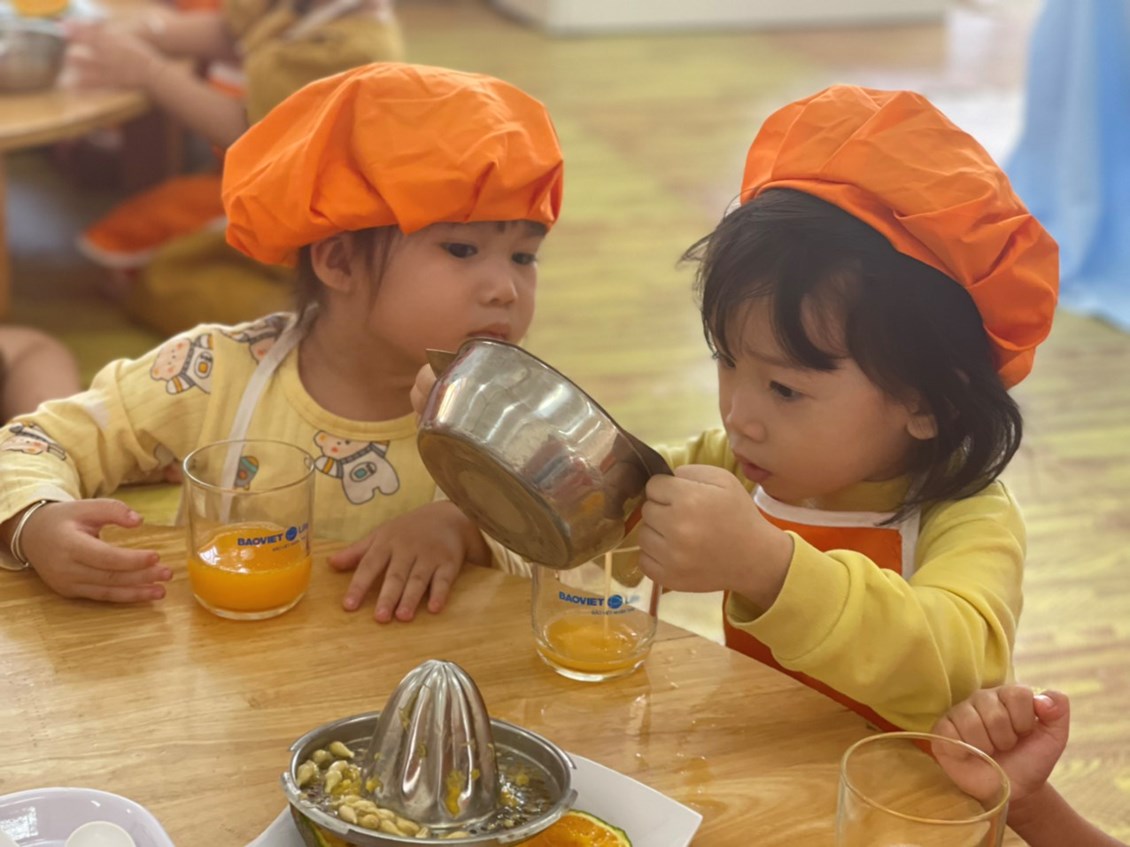 Hoạt động "vắt nước cam" đã mang lại nhiều tiếng cười, nhiều điều thích thú vì các bé được thưởng thức cốc nước cam ngon, ngọt do chính mình tự tay pha làm. Các bé cùng nhau phát triển các giác quan, cùng nhau rèn luyện kỹ năng cầm, xoay để vắt cam sao cho ra hết nước trong miếng cam và cùng thưởng thức cốc nước cam thơm ngon bổ dưỡng. Các bé còn hiểu được muốn cơ thể khoẻ mạnh và lớn lên cần phải ăn uống đủ chất và cần uống bổ sung các loại nước hoa quả chứa nhiều vitamin. Đặc biệt nước cam có tác dụng giải khát và bồi bổ thể lực vì có nhiều vitamin C.
