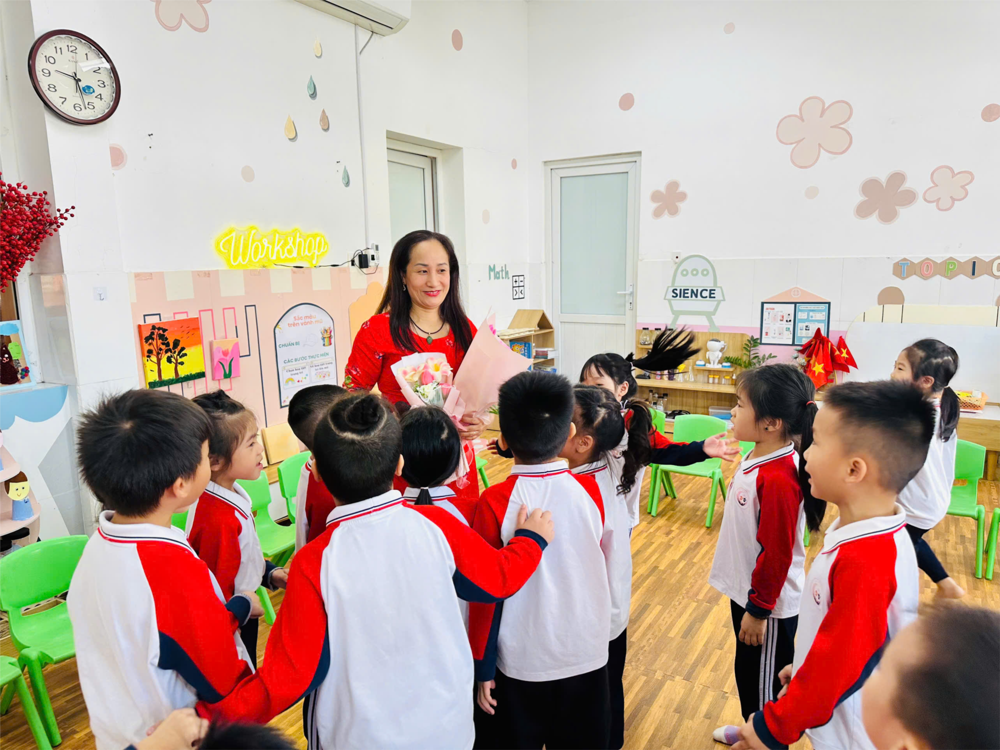 Hội thi Giáo viên giỏi cấp trường năm học 2025–2026 được tổ chức nhằm nâng cao chất lượng chuyên môn và tạo động lực đổi mới trong đội ngũ giáo viên. Các cô giáo tham gia đã thể hiện sự sáng tạo trong thiết kế hoạt động, ứng dụng phương pháp giáo dục tiên tiến và khai thác hiệu quả môi trường học tập. Qua hội thi, nhiều tiết dạy được đánh giá cao về tính trải nghiệm, lấy trẻ làm trung tâm và phát huy tối đa năng lực của học sinh. Đây cũng là dịp để giáo viên giao lưu, học hỏi, chia sẻ kinh nghiệm thực tiễn trong công tác chăm sóc – giáo dục trẻ. Kết quả hội thi góp phần khẳng định chất lượng chuyên môn của nhà trường và tiếp tục lan tỏa phong trào thi đua dạy tốt – học tốt trong năm học.