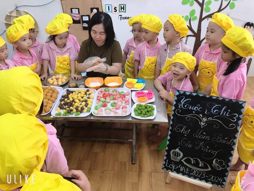 Thì ra hôm nay là NGÀY HỘI LÀM BÁNH của các bạn Sao Mai. 18 lớp, 18 kiểu bánh hình thù rất ngộ nghĩnh, cả trường như 1 xưởng bánh lớn, các bé được trải nghiệm làm bánh nướng, bánh dẻo, bánh nhân, bánh chay vui ơi là vui.