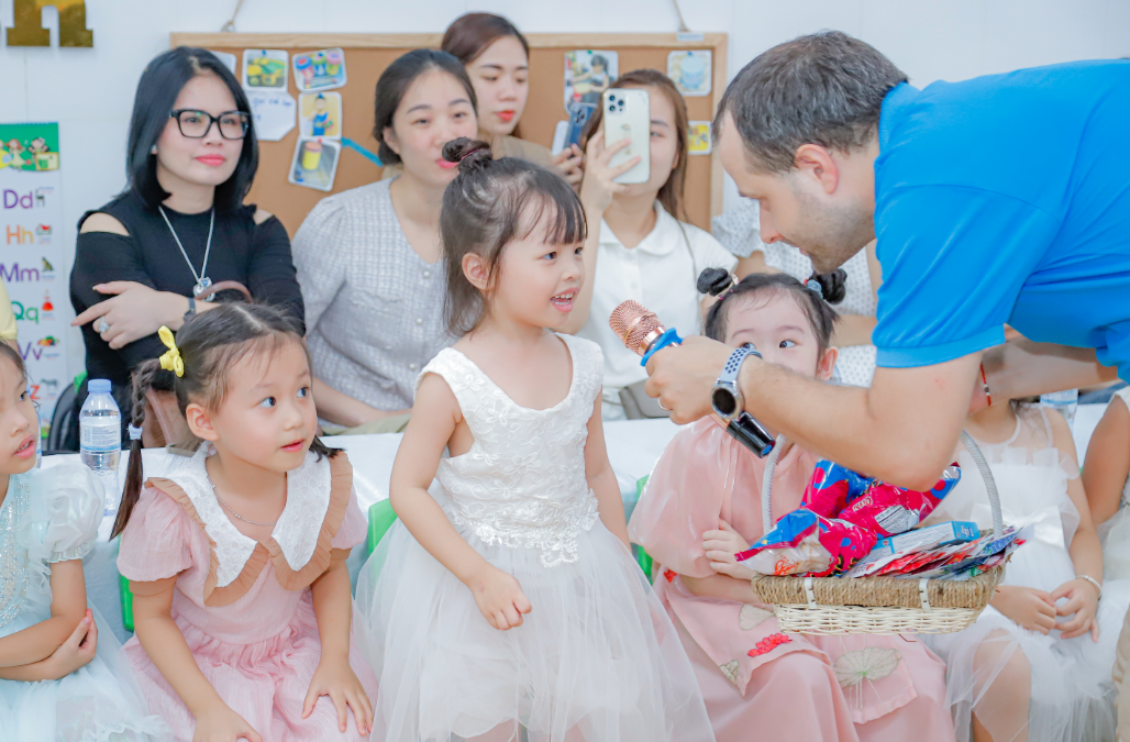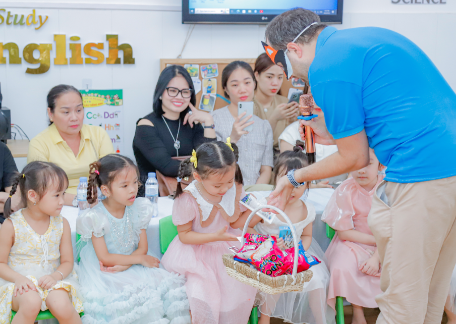 Với mỗi câu trả lời đúng, các bé lại được lựa chọn món quà hấp dẫn từ Giáo viên Tiếng anh.