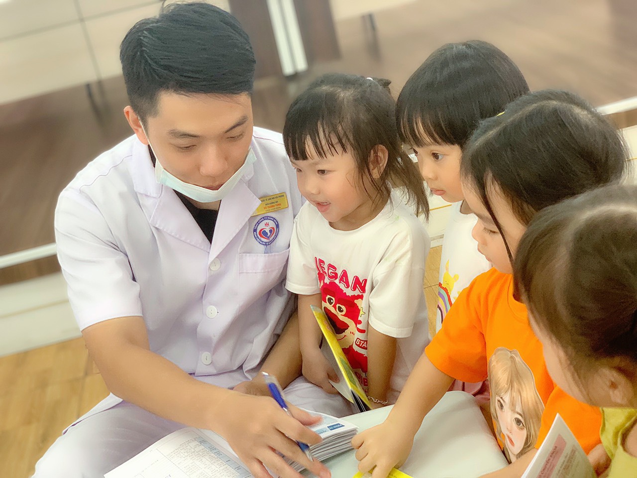 Các bạn ấy rất vui khi được bác sĩ khám bệnh cho ạ