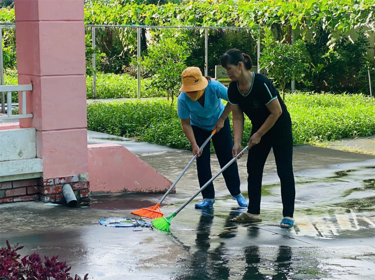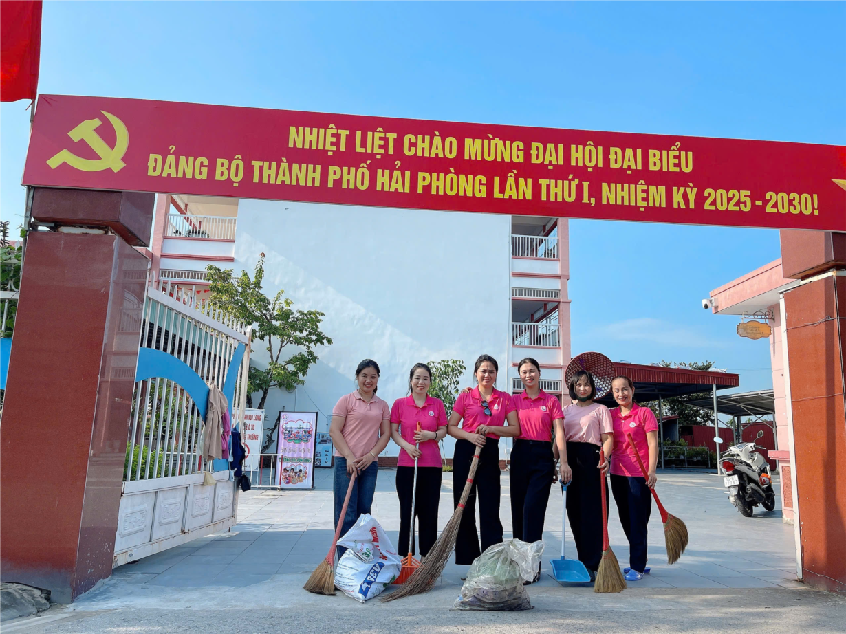 Tổng vệ sinh khuôn viên trường lớp sạch đẹp chào đón TP Hải Phòng mới, Phường Thuỷ Nguyên mới